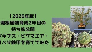 植物育成を始めたい方は必見。塊根植物育成2年目の育成者が持ち株を公開します。植物育成を始めたいのに何を購入すればいいか悩んでいませんか?この記事では持っている植物の育成状況や経過を紹介しています。この記事を読めば塊根植物育成を始めて2年を経過した私の育成している植物を通してあなたの購入する植物を決めるヒントがわかります。