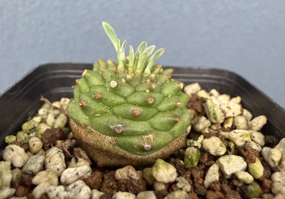 2025年9月に購入。実生2年半(播種が2023年)の株を購入したので、もうすぐ実生3年目に突入する株です。