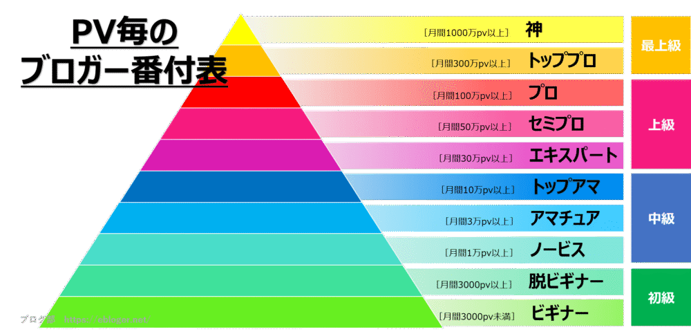 前回の運営報告(6ヶ月)ではPVの基準はいまいちわかりませんでしたが、その後わかりやすい表みたいなのを見つけたのでシェアします。