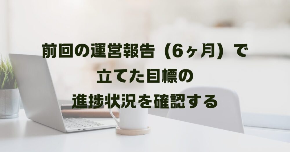 続いて前回の運営報告(6ヶ月経過時)で立てた目標の進捗状況を確認します。