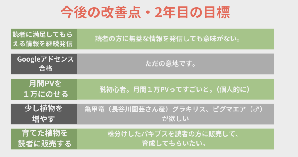 「それなら需要のある植物ジャンルに集中した方が読者のためになる」と判断し、ブログ開設から1年で植物特化に舵を切りました。