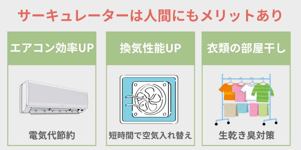 サーキュレーターは植物だけでなく人間にもメリットがあります。