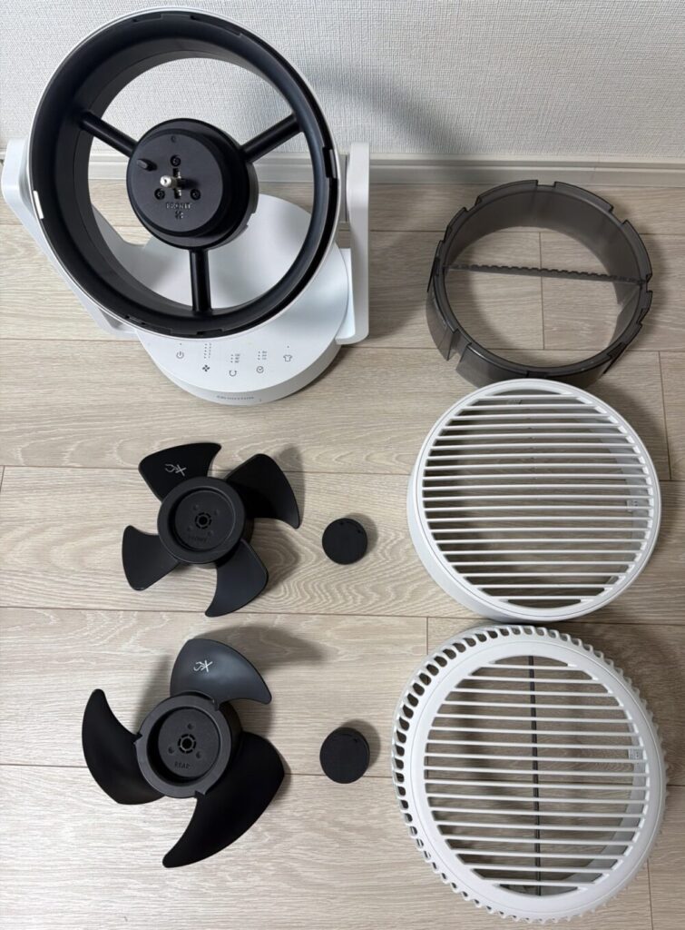 低い位置において使用するため、ファンや前後のガード部分にホコリが吸着しやすいので日々にお手入れが大切です。放っておくと、本来の性能を発揮することができないのと、ホコリを飛ばしてしまう恐れがあります。