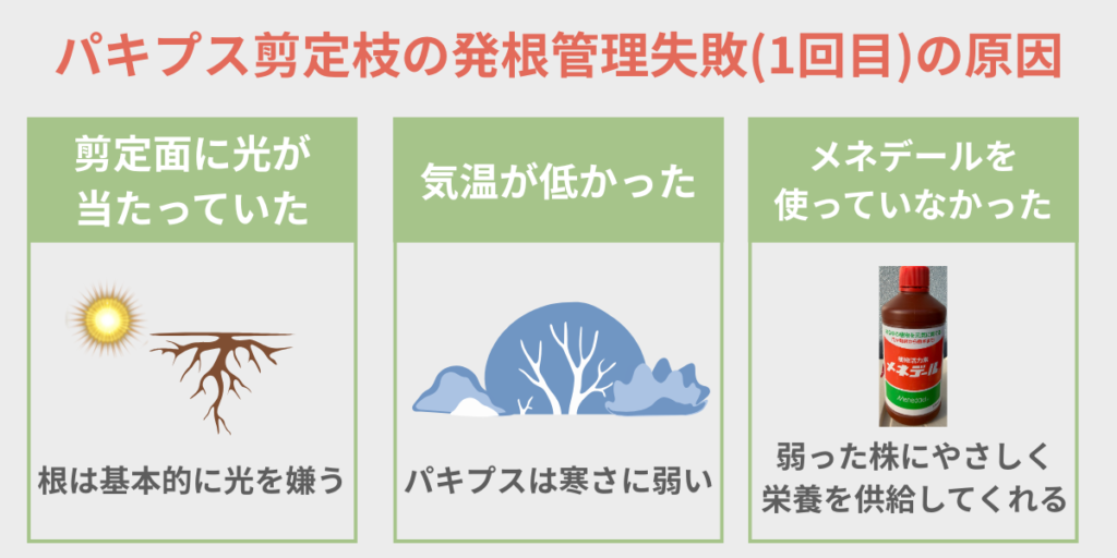 パキプス剪定枝の発根管理失敗(1回目)の原因