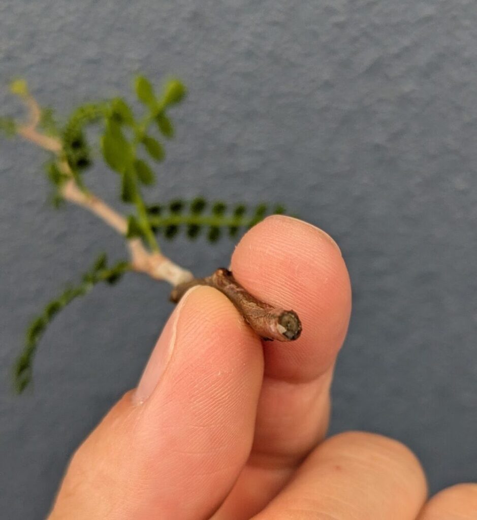 剪定に用意した枝は5本です。そのうち1本を本命とし、長さは約15cm、太さは約0.8cmでした。