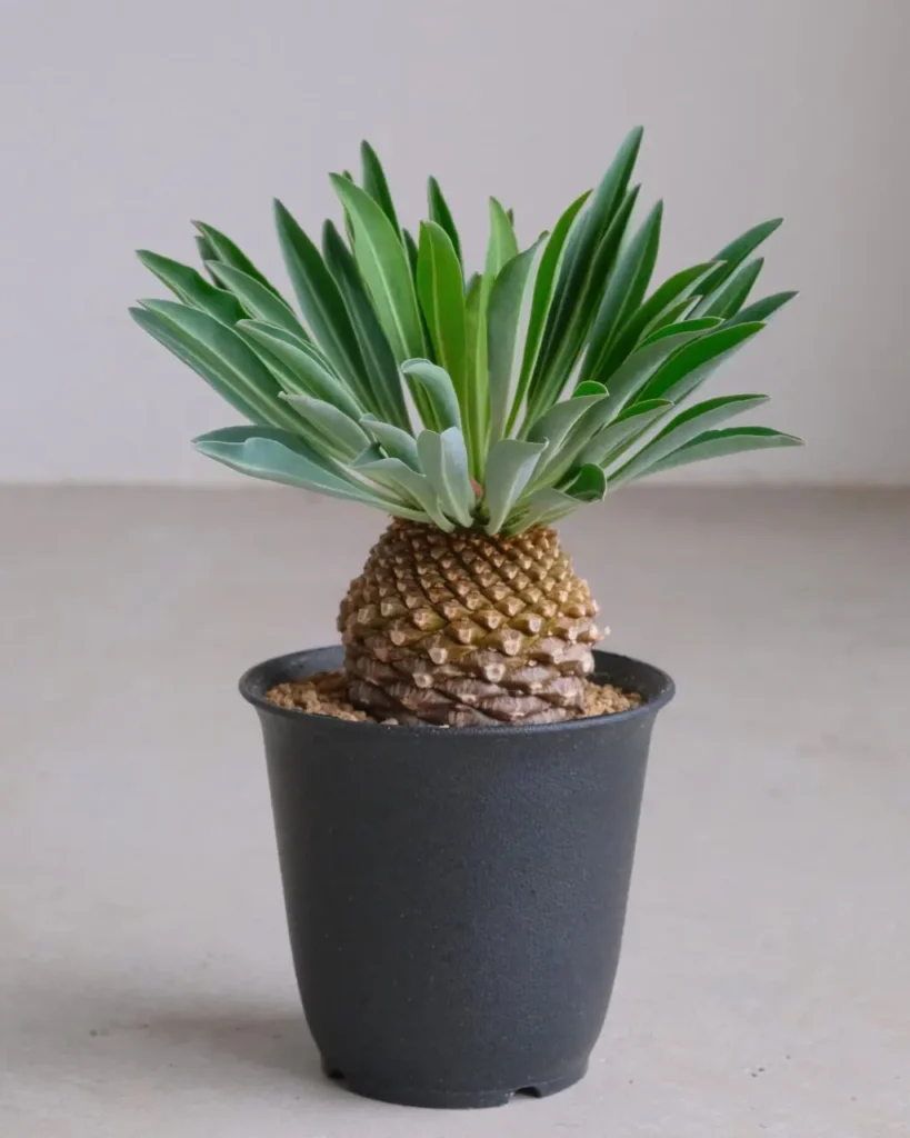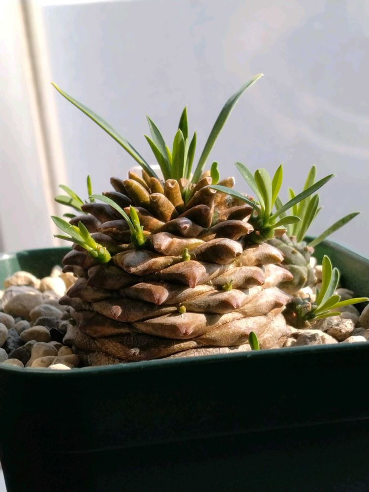 冬型のユーフォルビア属で、デコボコとした太い胴をもち、先端から葉を茂らせます。