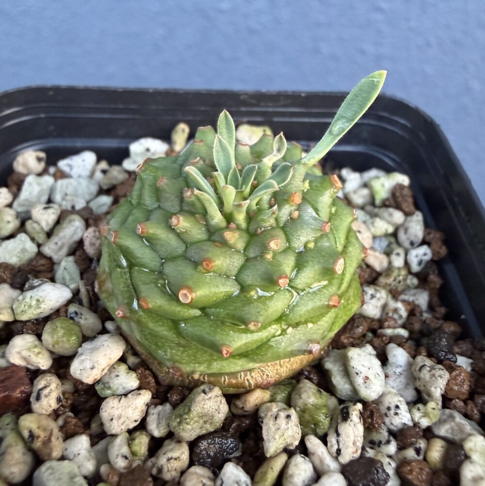 ユーフォルビア属の人気種「オベサ」と「鉄甲丸」をかけ合わせたハイブリッド株です。