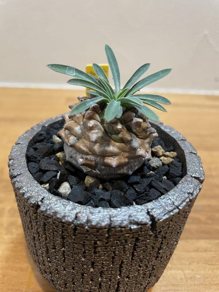 冬型のユーフォルビア属で、デコボコとした太い胴をもち、先端から葉を茂らせます。