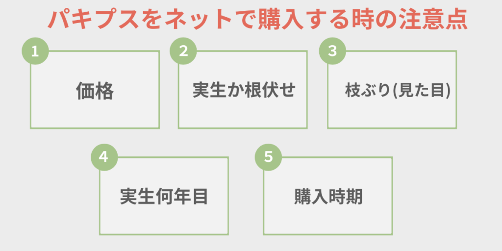 次は購入時に気にしたいことです。5つのポイントに注意して買ってもらえるといいです。