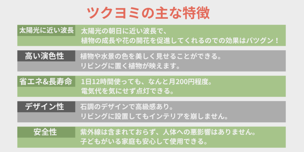 ツクヨミ(TSUKUYOMI)は、株式会社バレル(BARREL)が開発・販売する植物育成用LEDライトです。室内での観葉植物やアクアリウム、多肉植物、塊根植物など幅広い植物の育成をサポートするために設計されています。