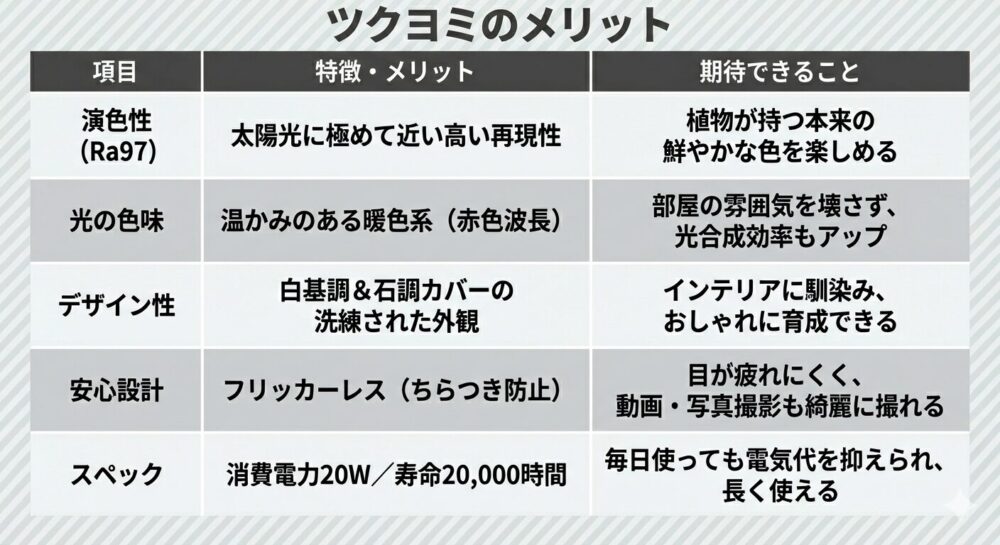 まとめ:パキプスを育てるのにオススメするの植物ライトは「ツクヨミ」