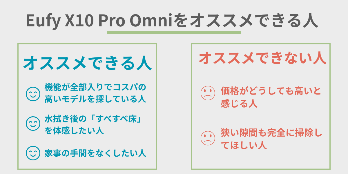 各社のロボット掃除機を比較検討するのが面倒な方はEufy X10 Pro Omniを選んでおけばまず間違いありません。