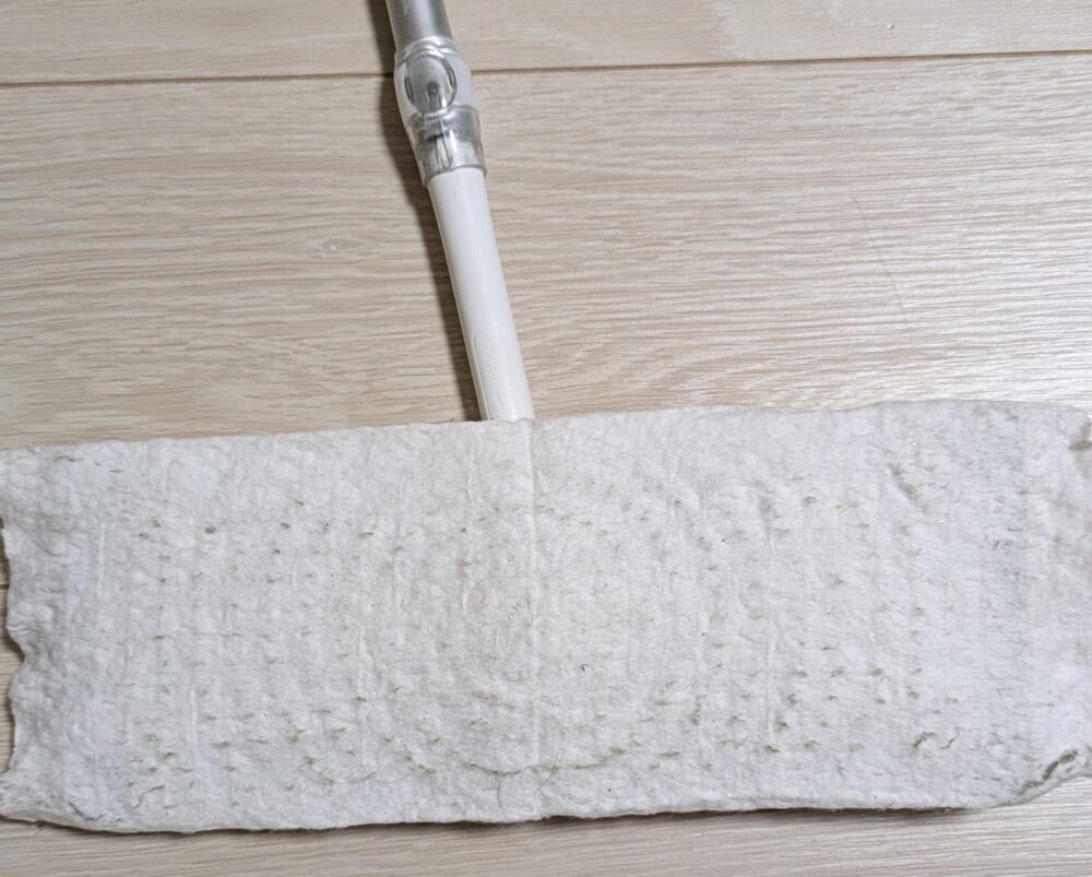 普段の我が家が実施している清掃設定でリビング(◯帖)を吸引と水拭きしたあとに、掃除機とクイックルワイパーをかけてみました。
