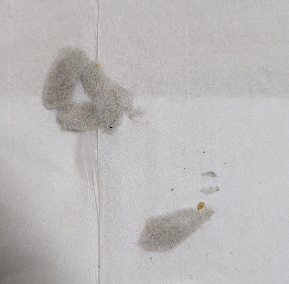 なんとこの程度しか汚れが付着しませんでした。流石に全くつかないということにはなりませんでしたが十分な結果です。ホコリや髪の毛の付着はありませんでした。
