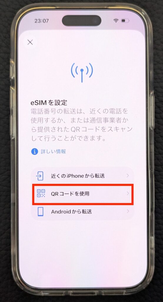 iPhone側でeSIMを受け取る