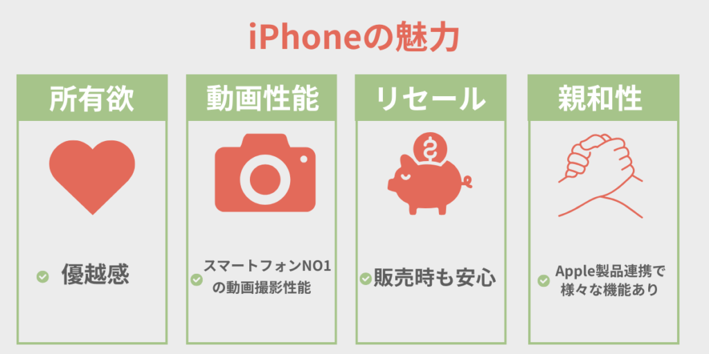 iPhoneは人気が高いため、中古でも価値が落ちにくいのが特徴です。機種変更時の下取りになるのでリセール価格は重要な要素です。