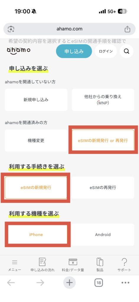 物理SIMをeSIMに変更する手続きをする。(ahamo)