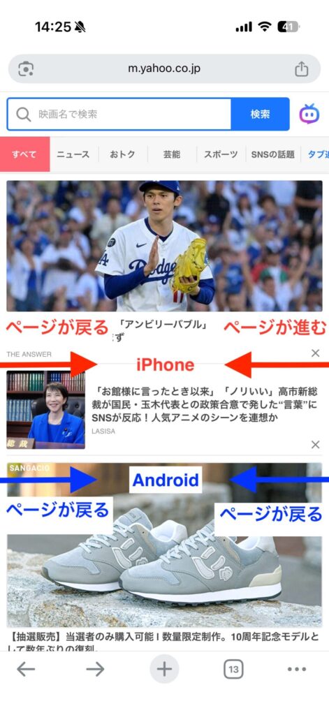操作中に前の画面に戻りたいと思った時にAndroidであれば画面の両サイドをスワイプすることで戻ることができます。しかしiPhoneは画面の左側をスワイプすることで戻る、画面右側のスワイプで進むため、片手での操作が非常に難しいです。ストレスです(3回目)。